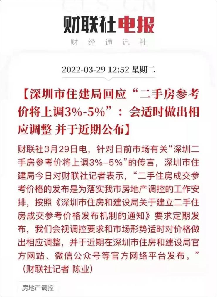 至于深圳方面,二手房指导价即将迎来适当调整、深圳首批供地限价小幅上调等消息也络绎不绝。