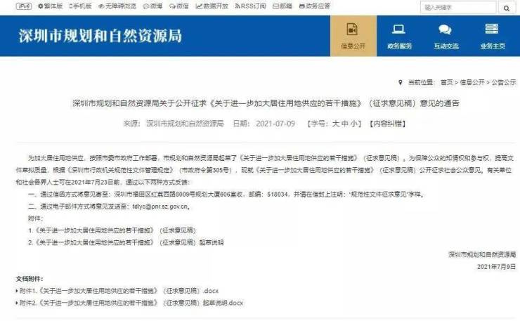 去年7月,深圳发布了《关于进一步加大居住用地供应的若干措施(征求意见稿)》,意见稿指出,未来深圳将在国土空间总体规划中合理安排生产、生活、生态空间,在保障总体用地结构均衡的前提下,逐步提高居住和公共设施用地规模和比例,确保至2035年全市常住人口人均住房面积达到40平方米以上,年度居住用地供应量原则上不低于建设用地供应总量的30%。