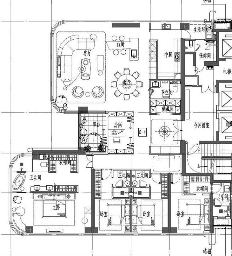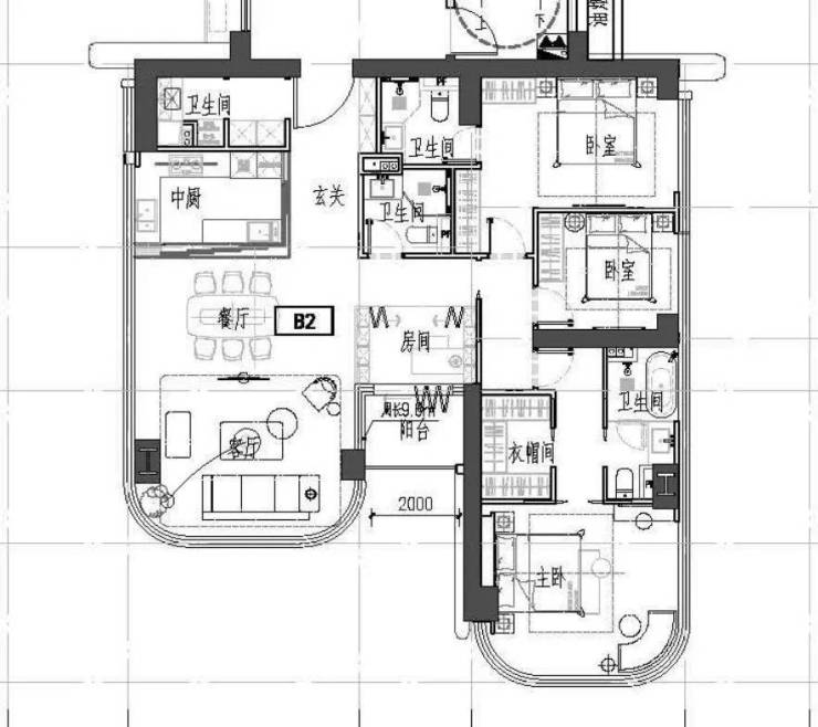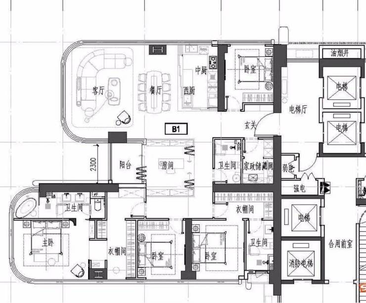 建面约196㎡的3房3厅2卫,共有128户。