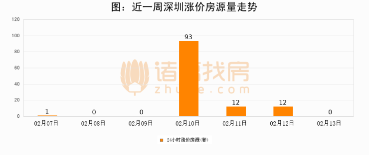 根据诸葛找房数据显示,深圳24小时涨价房源量为0套,较02月12日减少12套,环比下降100%。与此同时,涨价房源占比小幅回落,对于购房者来说是一个入市窗口期,购房者可抓住时机入市。