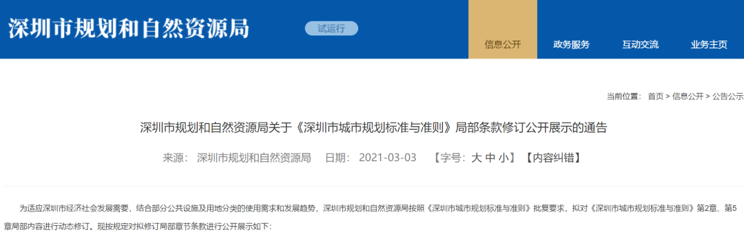 内容来源:深圳市规划和自然资源局关于《深圳市城市规划标准与准则》局部条款修订公开展示的通知