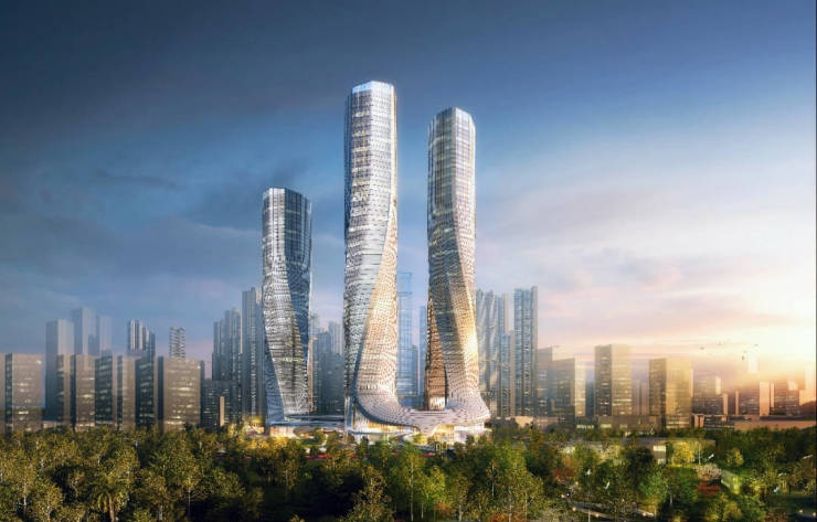项目一期(01-08)地块规划有1栋5座塔楼,其中,2座商务公寓(1座26层、1座59层),3座超高层住宅,均为74层。