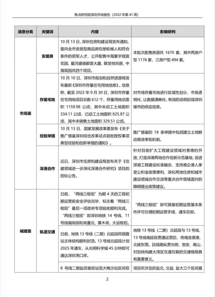 焦点研究院 深圳房地产市场月报告