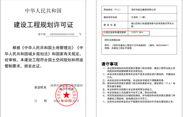 公示的用地建设工程规划许可证显示,项目计容建面约13.8万㎡