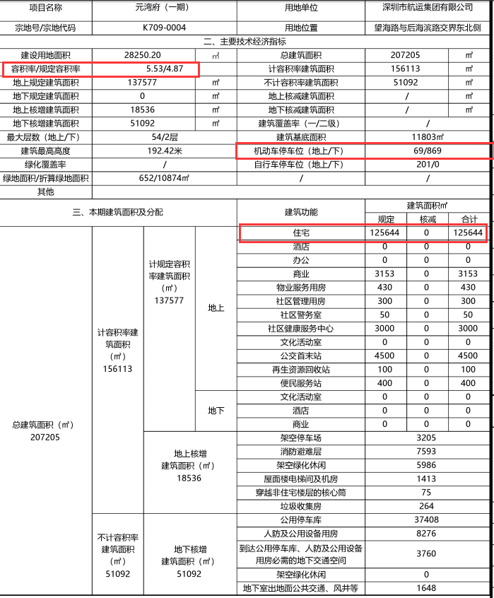 根据公告显示,中信深圳湾(备案名:元湾府)所在的K709-0004地块,总用地面积约4.4万㎡,总建面约31.8万㎡,计容总建筑面积约24.5万㎡,容积率5.5,规划机动停车位1267辆。物业类型涵盖住宅、酒店、办公、商业及相关社区配套。