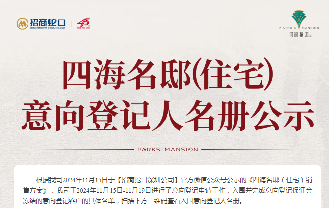 370批意向客户抢206套房!南山四海名邸公示意向名册,11月22日开盘