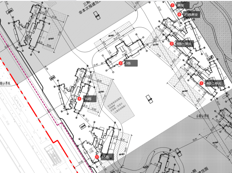二期主要由4栋住宅(3、4、1 5、1 6栋)及2栋商业(24、25栋),共规划488套。