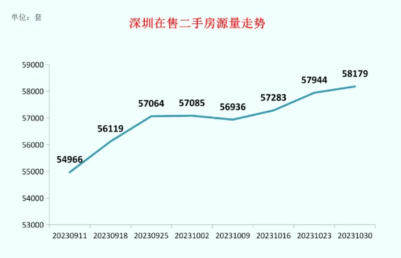 但供应量同步持续上涨,截止10月底,深圳在售二手委卖房源已超5.8万,近几年新房计划供应每年也维持在6万套,供应加大,成交放缓,成交周期拉长。