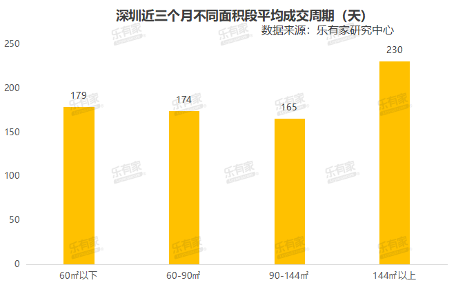面积段方面,90-144㎡成交更快,144㎡以上成交周期相对较长。