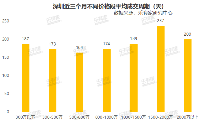 价格段上来看,500-800万成交最快,1500-2000万成交周期较长