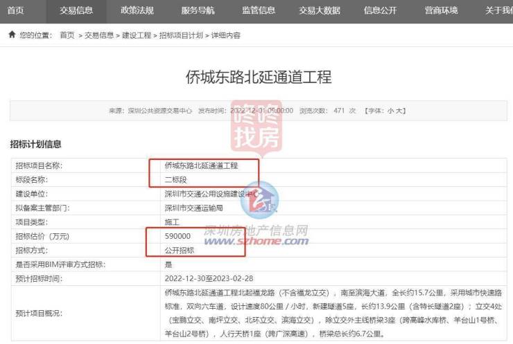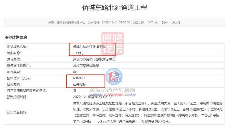 侨城东路北延通道终于要来了,12月1日,侨城东路北延通道工程二、三标段施工招标!计划招标时间为2022年12月30日到2023年2月28日,两个标段的招标计划总金额达128亿。