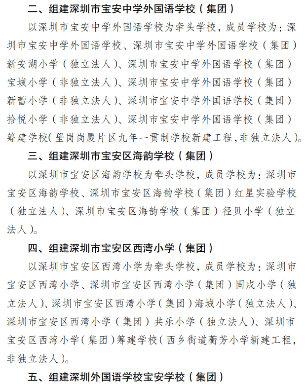 二、宝安新成立4个教育集团,纳入一批学校