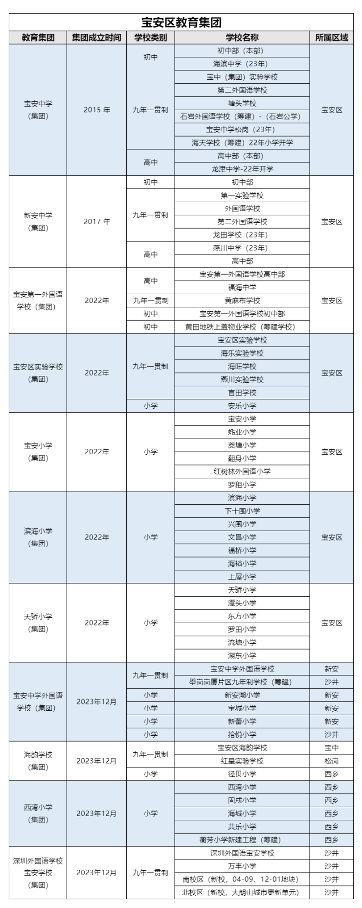 优化调整深圳市宝安中学(集团)。原成员学校深圳市宝安中学(集团)外国语学校从集团溢出。