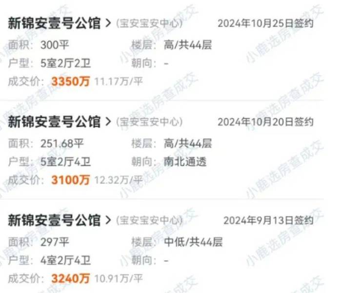而在年末,部分房型的价格还有进一步下探的趋势,300㎡的5房户型,去年10月成交单价跌落至11.17万/㎡。