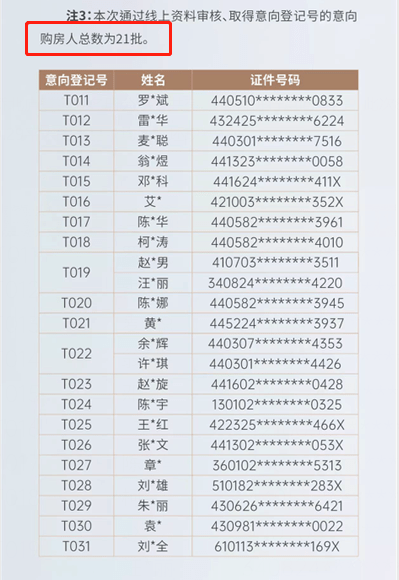 12月5日,天健天骄北庐登记人名册公示,共有21批客进行意向登记,此次8套现房进行销售,面积段主要为122.39-210.29平米的产品,均为毛坯现状交付。