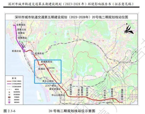 根据这份目前的最新公示显示,20号线二期工程,起于机场北站,终至福田会展站,线路全长34.8公里,设站14座,一段一场。其中包含航城站、航城医院站、西乡公园站等车站点。