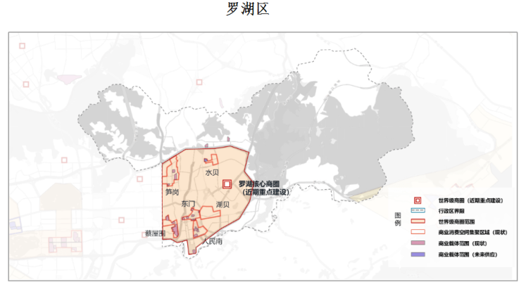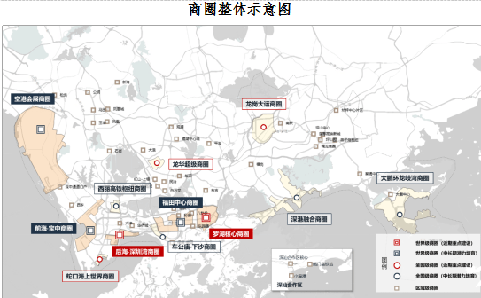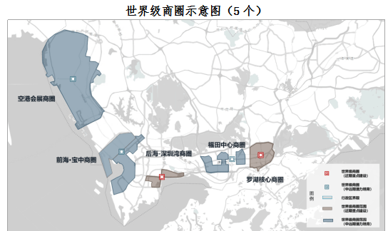 规划显示,打造5个世界级地标商圈(规划打造2个近期重点建设型商圈,包括罗湖核心商圈、后海-深圳湾商圈;3个中长期潜力培育型商圈,包括福田中心商圈、空港会展商圈、前海·宝中商圈)。