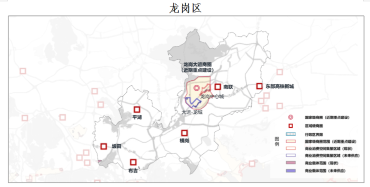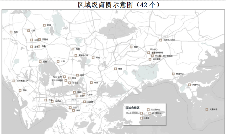 本次规划共划定42个区域级活力商圈,包含八卦岭商圈、大冲商圈、石岩商圈、横岗商圈、民治商圈、坪山围商圈、光明中心区商圈、葵涌中心商圈、深汕合作区核心商圈等。