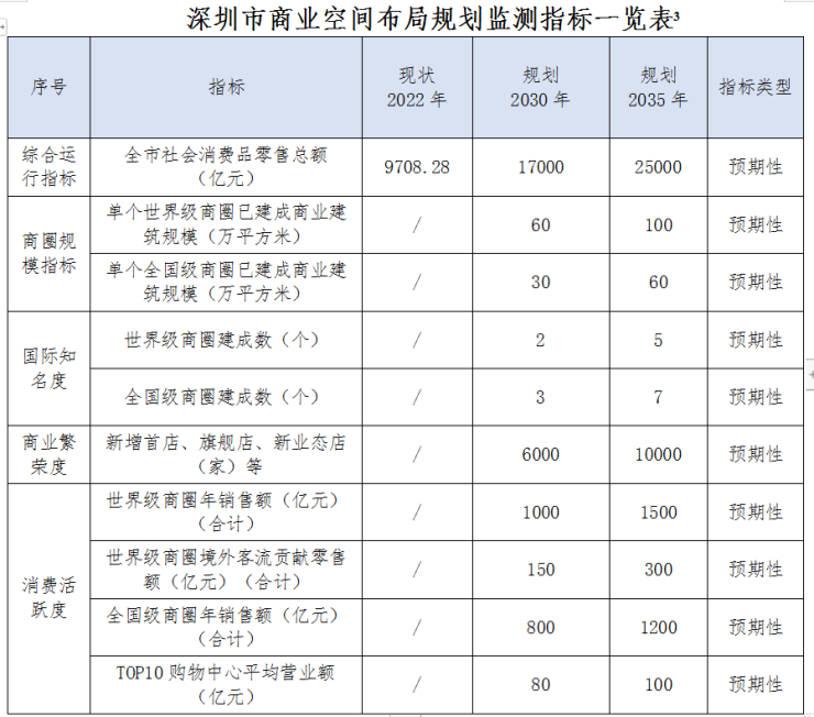 到2035年,社消零规模接近2.5万亿元,将深圳建成商业创新力、竞争力、影响力卓著,城市个性、人文魅力全面绽放的国际消费中心城市典范。