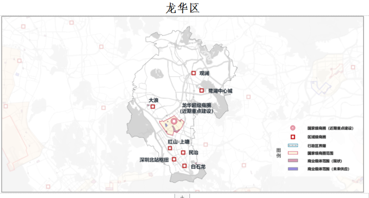 发展策略:提升民治、龙华商圈,做旺观澜、大浪商圈,建成若干主题鲜明的商业地标和体验中心,打造年轻、潮流、时尚主题消费集中地。