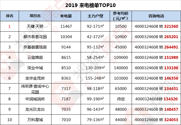 深圳2019年楼市在12月新房成交和供应中翘尾收官,在本年度中,出现不少热度飙高的楼盘。据搜狐焦点运营中心400咨询来电统计,2019年度深圳人最受关注的热盘如下。