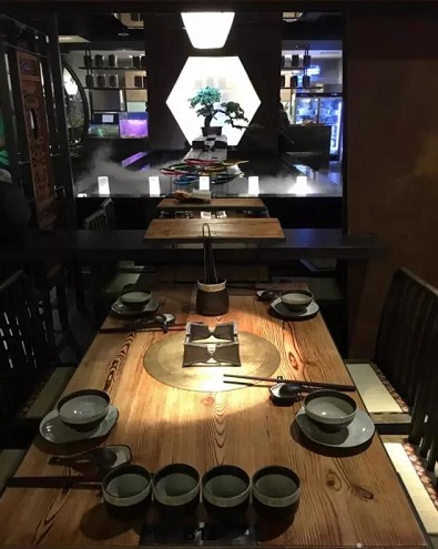 餐厅设计以“现代东方”为主调,混合了中式、日式禅风和现代感的装潢显得颇为雅致。和热闹喧嚣的火锅相比,湊湊气质似乎高冷一些。门店宽敞、用餐环境私密,围桌而坐,不论是大锅同涮还是分小锅而食,都在半封闭的环境中。青灰色的砖墙、本木色的桌椅、拱门,错落有致的物品摆放,温暖柔和的灯光照明,营造平衡与放松的环境,让人不自觉地撇去浮躁,带来舒适惬意的空间体验。用餐区用屏风、竹帘、植物巧妙地进行了区域划分。环境氛围的营造让食客体验到有别以往热闹火锅的一种清雅安静。鼎尚联合餐饮设计师章建军讲到,为满足不同食客的需求,环境氛围还可以营造出一个自然、诗意的用餐环境,例如我们设计的主厅仿造四水归堂之境的火锅黑马——野妹经典火锅,自选超市前的主厅以四水归堂为核心概念,天花以蓝天白云意境作为天井明堂,青瓦作马头墙排布四周,矮隔断四周的江南意境发光图片,让人遐想联翩……光线顺流而下,虚实相生,仿佛在半空漂浮,显得自然又充满生活气息,达到天人合一的意境理念,为空间增添雅意。