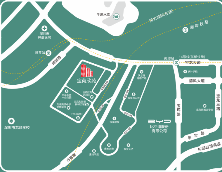 宝荷欣苑位于龙岗区宝龙街道宝龙社区荷润路8号(宝荷南路与沙荷路交汇处),周边有京基御景半山、宝昌利御景御峰公馆等次新小区。