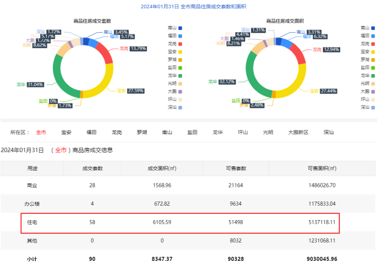 1月31日深圳新房住宅成交58套 二手房住宅成交95套