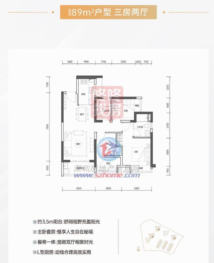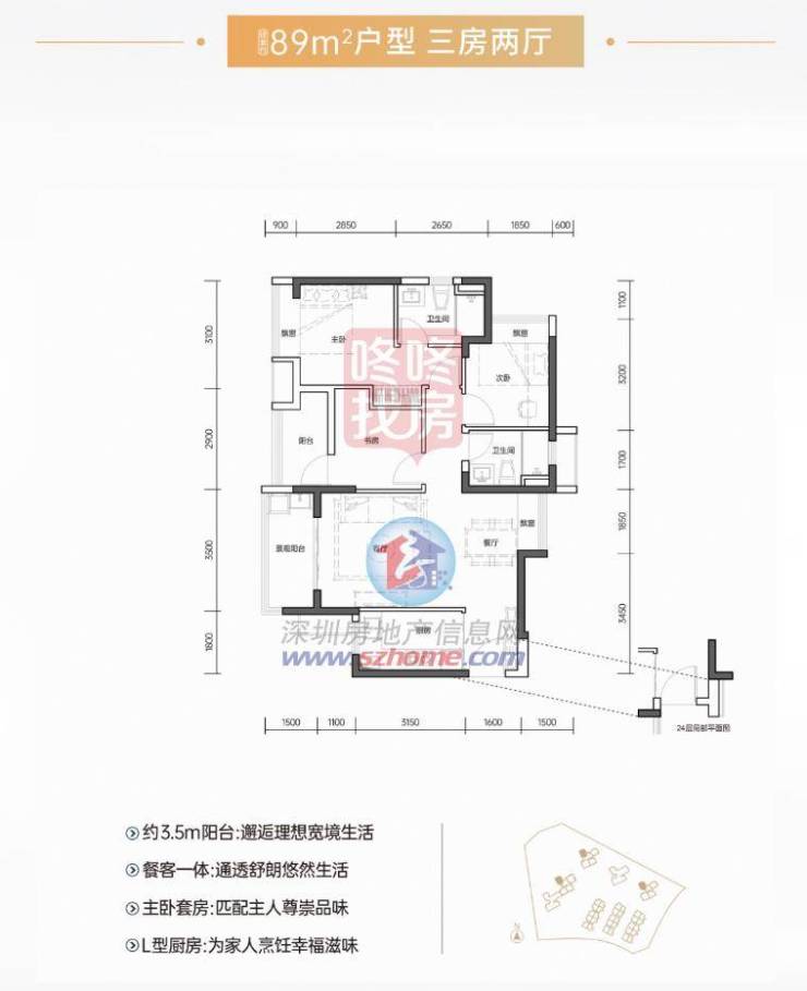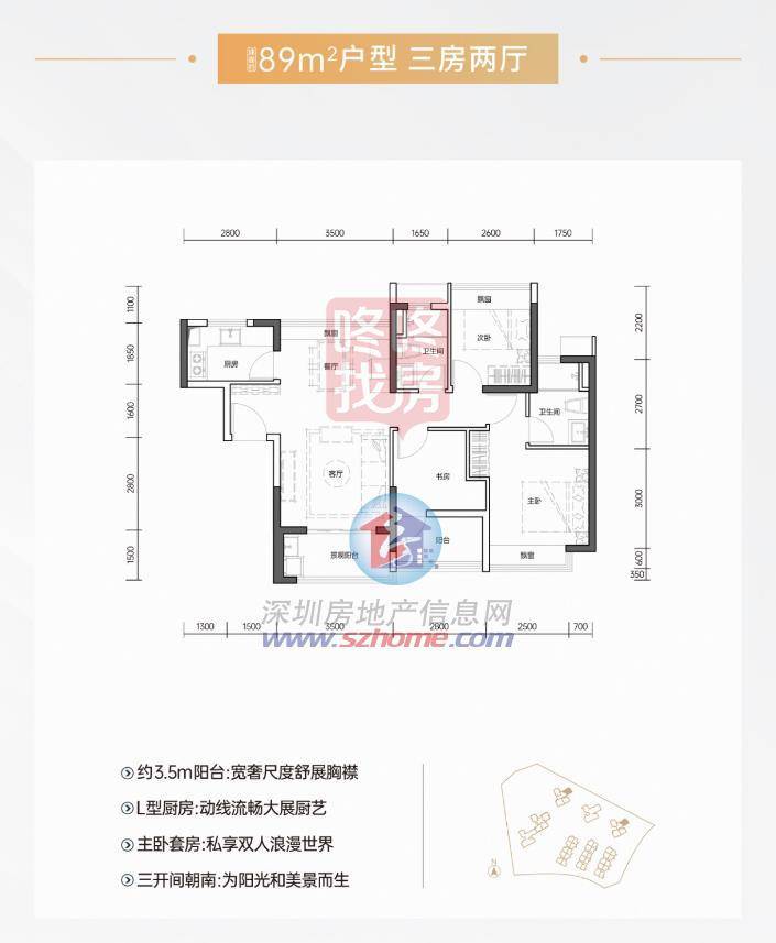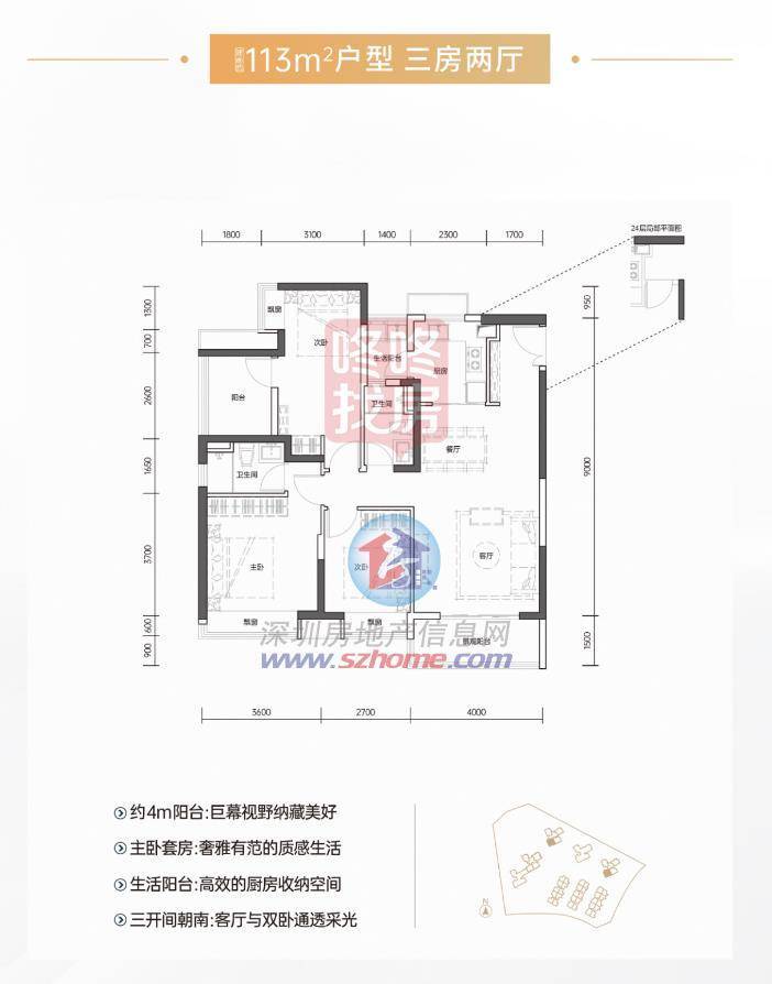主推89㎡-113㎡面积段产品,共4个户型,毛坯交付。