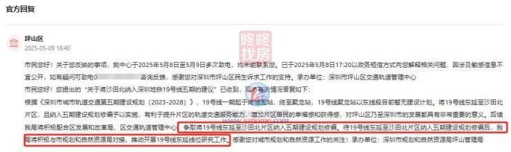 最后,最近关于深圳地铁五期调整,相关部门也回复了市民询问。我们一起来看看吧: