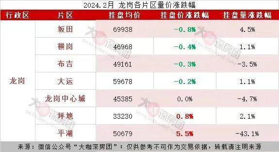 据大咖深房团统计,2月龙岗7个片区的量价涨跌榜中,有4个片区房价下滑,2个片区房价上涨。