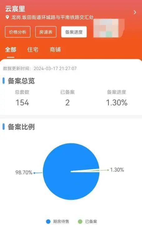 2024年坂田已经有1新盘(云宸里)入市,不过入市已超2个月仅卖出2套,去化不足1.5%;