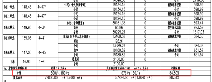 天璞世纪雅苑共规划2栋,其中1栋共有5个单元,1栋三单元为办公产品,可售人才房位于1栋四单元。2栋为4层高的幼儿园。另,项目北侧规划有18班小学教育用地。