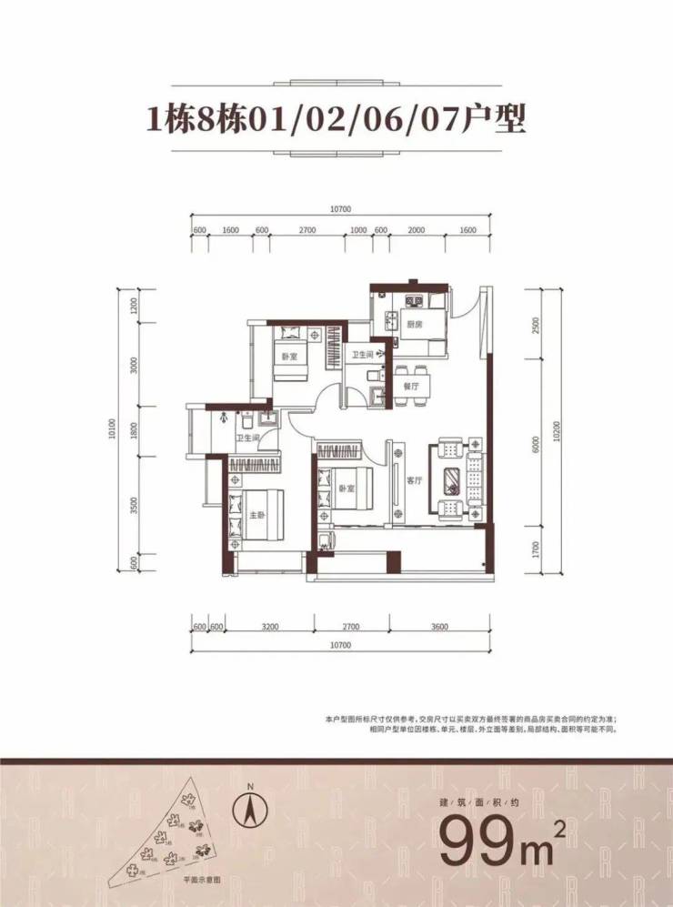 其中1栋和8栋是3梯6户,2栋是2梯6户,户型图如下。