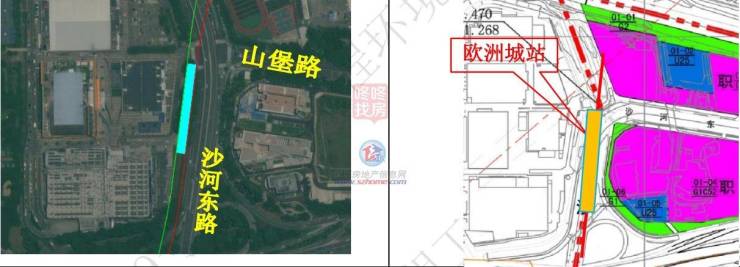 沙河东路与北环大道交叉口北侧, 沿沙河东路西侧南北向布置。车站周边分布有宜家家居、迪卡侬运动超市、新安职业技术学院等建筑物。