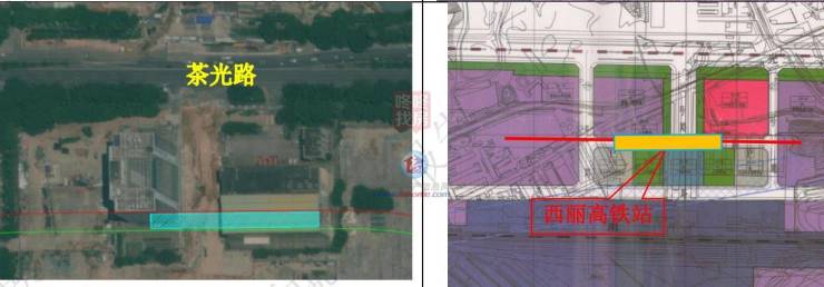 位于西丽高铁枢纽,沿东西向敷设。车站周边正在进行高铁枢纽建设。