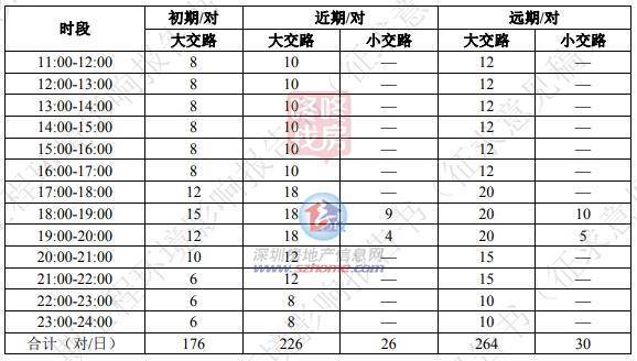 工程每天早晨6:00开始投入运营,晚上24:00结束运营,全天 共计运营18小时,全日行车计划见下表。