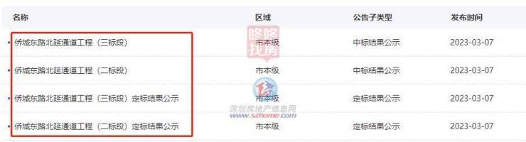 2021年底,侨城东路北延通道工程(一标段)完成施工招标,中标单位为中铁南方投资集团有限公司、中铁六局集团有限公司。中标金额67565万元。中标工期1120天。