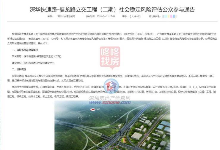 近日,深圳市交通运输局官网发布《深华快速路-福龙路立交工程(二期)社会稳定风险评估公众参与通告》面向公众征求意见。