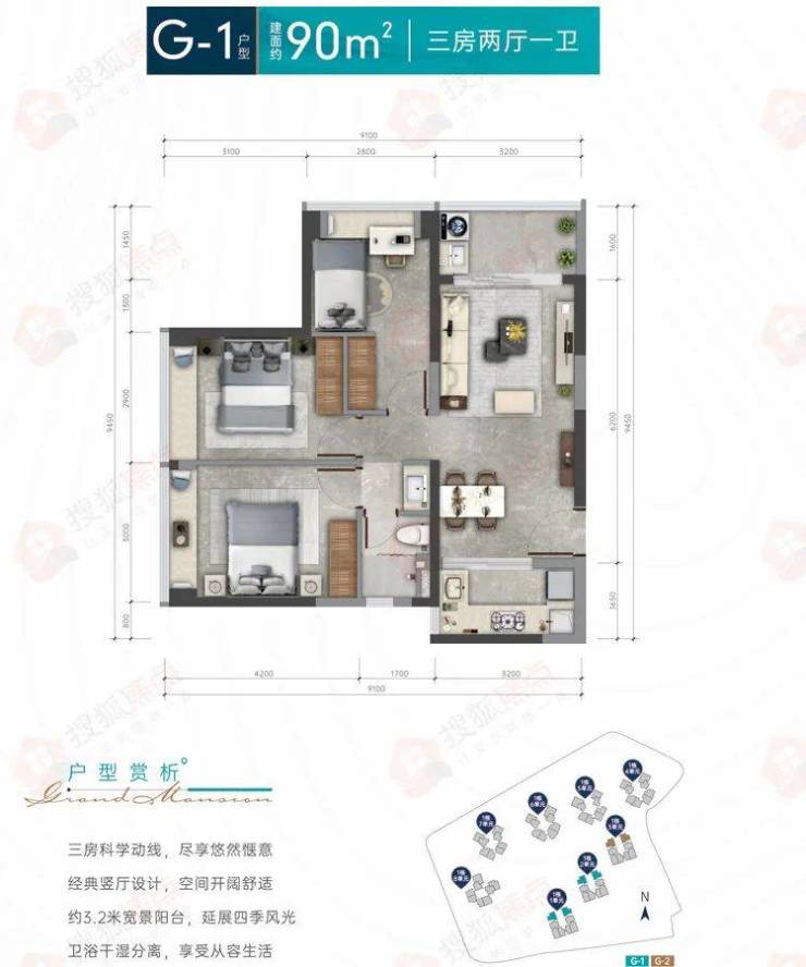 本批配售817套建筑面积约90㎡3房,配售均价为59394.52元/平方米(带装修)。