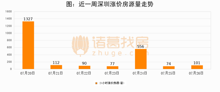 根据诸葛找房数据显示,深圳24小时涨价房源量为101套,较07月25日增加27套,环比上涨36.5%。与此同时,涨价房源占比小幅扩大,业主信心有所提升。