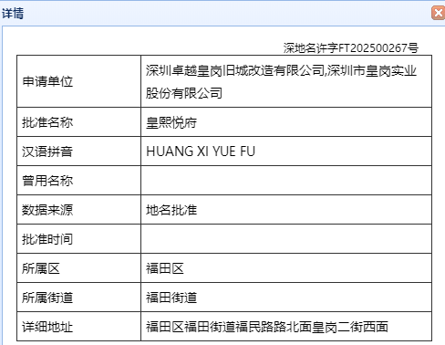 日前,深圳管理局公示卓越皇岗村旧改项目批准名“皇熙悦府”。