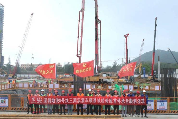 近日,地铁8号线三期溪涌车辆基地检修库首座承台顺利浇筑。