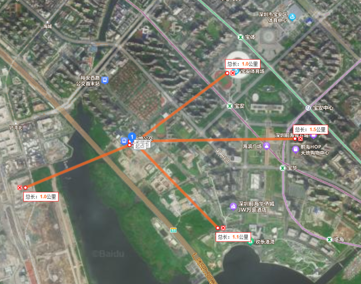 轨道交通方面,中铁阅臻府周边虽然5条地铁线路(在运营的1/5/11号线,在建的15号线及规划中的28号线),但项目距离地铁口均稍远。短期内最近的地铁为5号线宝安站,地图测距接近1公里(步行距离)。