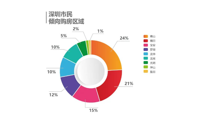 据深圳乐有家研究中心针对2024年置业意向调查问卷显示,深圳意向购房者倾向的购房区域主要是南山、福田,其中,南山区域占比24%领先。