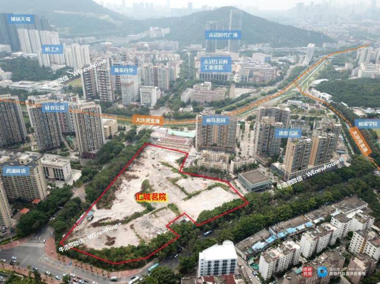 汇城茗院位于南山西丽湖路与丽水路交汇处,属于西丽湖国际科教城区域,南面近沙河支流,北面高层可以看西丽水库。
