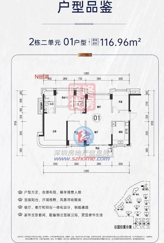 2栋二单元01户型建筑面积116.96m²