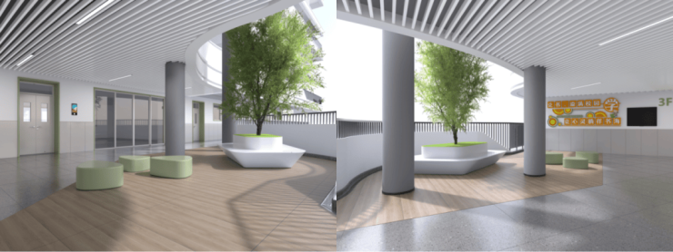 采用模块化布局和多功能教室设计,配备可调节设施,轻松适应教育模式的创新和未来需求的变化,确保校园环境能够持续满足师生的发展和学习需求。每层的机动教室预留发展空间,与中心生态庭院相连,可拓展成为年级活动场所。