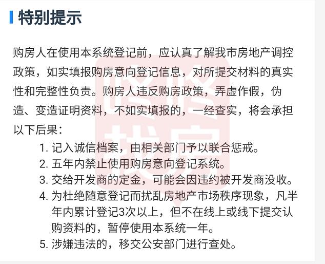 4、为杜绝随意登记而扰乱房地产市场秩序现象,凡半年内累计登记3次以上,但不在线上或线下提交认购资料的,暂停使用本系统一年;