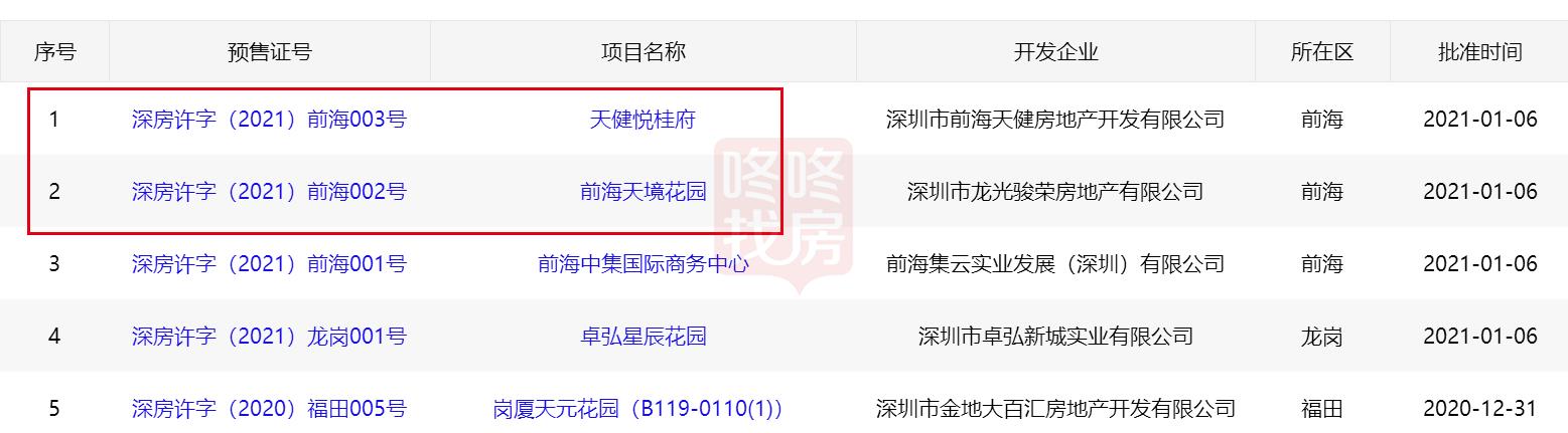 1月18日晚,前海两大热盘同时取得预售证,共计推出1430套住宅。